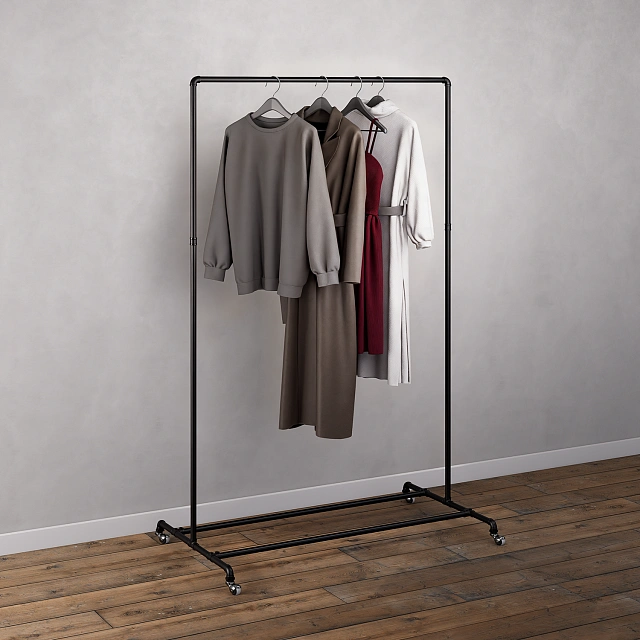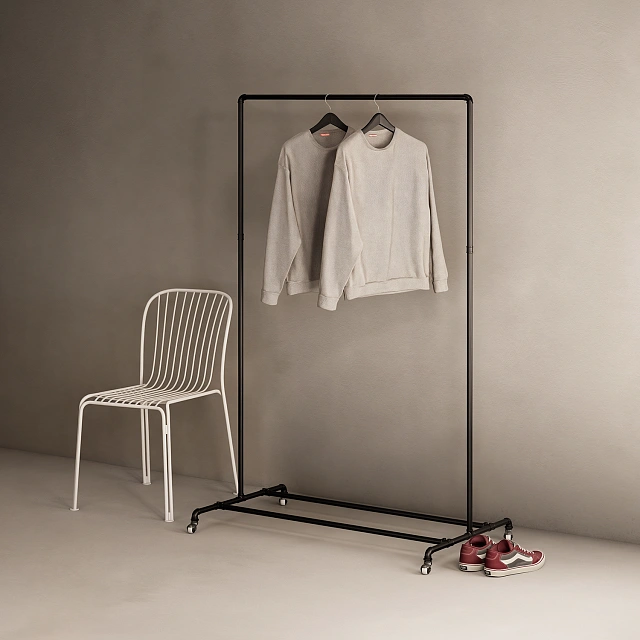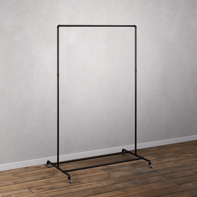Мобильная и функциональная система PIPE20BL на колесиках для организованного хранения одежды и обуви. Этот рейл заменит громоздкий шкаф и станет идеальным решением для прихожей, гардеробной или даже спальни. Прочная металлическая конструкция обеспечивает устойчивость, а продуманная компоновка включает все необходимое: верхнюю перекладину для одежды на вешалках и полку из труб снизу, предназначенную для аккуратного хранения обуви, сложенных вещей, сумок или коробок. Легко собирается и перемещается в пространстве благодаря прочным колесикам.