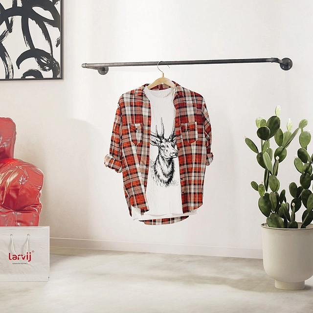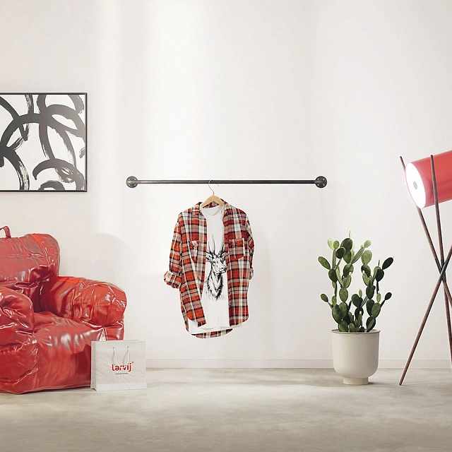 На трубе-перекладине поместятся более 8 вешалок с одеждой. Комплект также подойдет для хранения различных аксессуаров. При таком хранении вещи проветриваются, остаются всегда на виду и дольше сохраняют опрятный вид. Современный и функциональный вариант организации порядка в стиле лофт. Не только место хранения, но и стильный элемент интерьера, который будет радовать вас каждый раз, когда вы будете использовать его.
