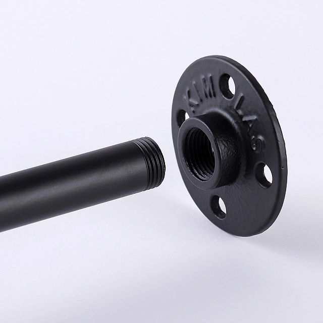 Соберите комплект по инструкции: вкрутите трубы в Г-образные соединители и фланцы до упора. Разметьте место установки комплекта, используя уровень. Просверлите отверстия для крепления фланцев и вставьте в них дюбели. Закрепите каждый фланец саморезами к полу и стене.